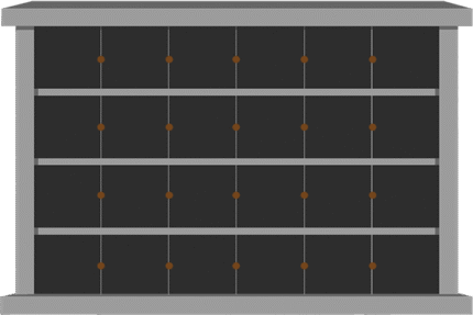 24 Niche Horizontal 1-sided Columbarium6-7×1-6×4-11 China Grey Walls/Jet Black Doors; 6×4 Niches Includes Rosettes, Key & 2 Extra Niche Doors CFS-E-025